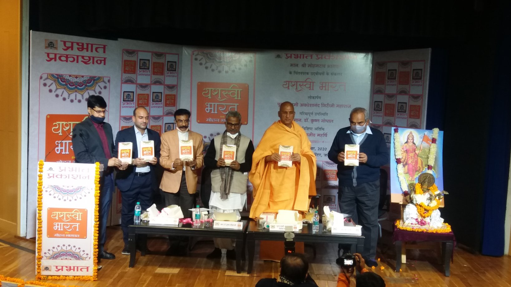 नई दिल्ली. अंबेडकर इंटरनेशनल सेंटर में राष्ट्रीय स्वयंसेवक संघ के सरसंघचालक मोहन भागवत जी के भाषणों का संकलन ‘यशस्वी भारत’ का लोकार्पण जूनापीठाधीश्वर आचार्य महामंडलेश्वर अवधेशानंद गिरी के करकमलों से संघ के सह-सरकार्यवाह डॉ. कृष्ण गोपाल की गरिमामय उपस्थिति में भारत के पूर्व नियंत्रक व महालेखा परीक्षक राजीव महर्षि के विशिष्ट आतिथ्य में संपन्न हुआ. यशस्वी भारत का प्रकाशन प्रभात प्रकाशन ने किया है.