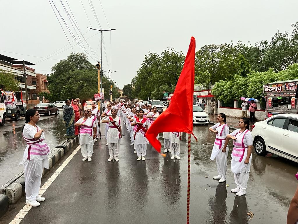 যোধপুৰঃ ৰাষ্ট্ৰ সেৱিকা সমিতি, যোধপুৰ প্ৰান্তৰ প্ৰৱেশ/ প্ৰবোধ শিক্ষা বৰ্গত ভাগ লোৱা সেৱিকা সকলে দেওবাৰে সন্ধিয়া চৰ্দাৰপুৰাৰ নেহৰু পাৰ্কৰ পৰা পুৰ্ণ গণৱেশত, ঘোষ বাদ্যৰ তালে তালে খোজত খোজ মিলাই পথ সঞ্চালন কাৰ্যসূচিত অংশগ্ৰহণ কৰে ।