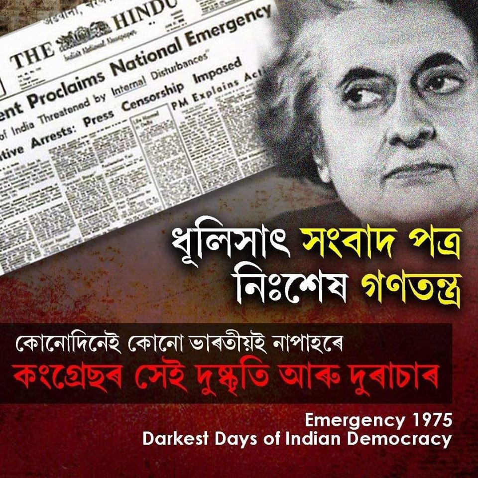 ऐसे में इंदिरा गाँधी ने लोकतंत्र और न्यायिक व्यवस्था का सम्मान करते हुए अपने पद का त्याग करने के बदले अपने बड़े पुत्र संजय गाँधी व अन्य सिपहसालारों के साथ षड्यंत्रकारी मंत्रणाओं में लगी रहीं और 25 जून, 1975 की रात घड़ी की सूई के ठीक 12 पर पहुँचने के चंद मिनट पहले देश में आंतरिक खतरे के नाम पर आपातकाल की घोषणा कर दी गयी. आपातकाल की घोषणा होते ही इंदिरा गाँधी का खूंखार तानाशारी चेहरा नेहरु की विरासत और लोकतांत्रिक परम्पराओं के सारे लबादे और मुखौटे उतार कर प्रकट हो गए. उसके बाद के 19 महीनों में इस देश में जो हुआ, वह अडोल्फ़ हिटलर की तानाशाही से थोड़ा ही कम था. सारी संवैधानिक व्यवस्थाएं निष्प्रभावी और निस्तेज हो गयीं थीं, पूरा देश कांग्रेस और भारतीय कम्युनिस्ट पार्टी (सीपीआइ) के संयुक्त आतंक से भयाक्रांत हो गया था. पूरी सत्ता इंदिरा गाँधी के हाथों में केंद्रीभूत हो गयी थी. अखबारों के सम्पादकीय पन्ने सफ़ेद-सपाट हो गए थे, जिसको जहां जैसे मन करे गिरफ्तार कर लेना प्रशासन का मनोरंजन हो गया था. 25 जून 1975 के बाद के 19 महीनों का भारत का इतिहास आतंक, ह्त्या, उत्पीड़न, दमन और अनंत यातनाओं का इतिहास बन गया.