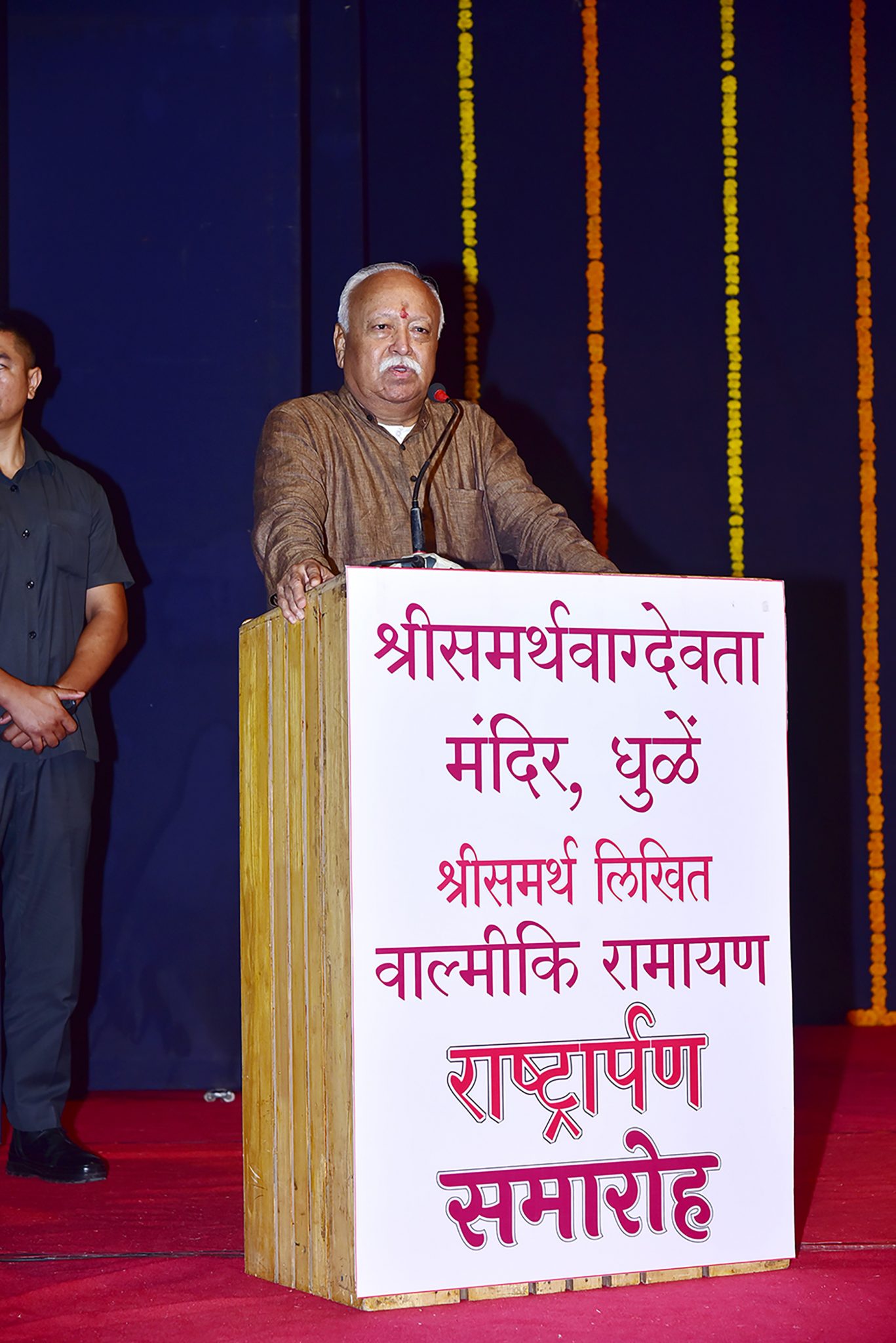 श्री समर्थ वाग्देवता मंदिर, धुळे संस्था की ओर से श्री समर्थ रामदास स्वामी जी लिखित वाल्मीकि रामायण ग्रंथ के खंडों को सरसंघचालक जी ने राष्ट्रार्पित किया. प्रकाशित आठ खंडों में मूल हस्तलिखित के साथ मराठी और अंग्रेजी में उसका अनुवाद भी प्रस्तुत किया गया है.