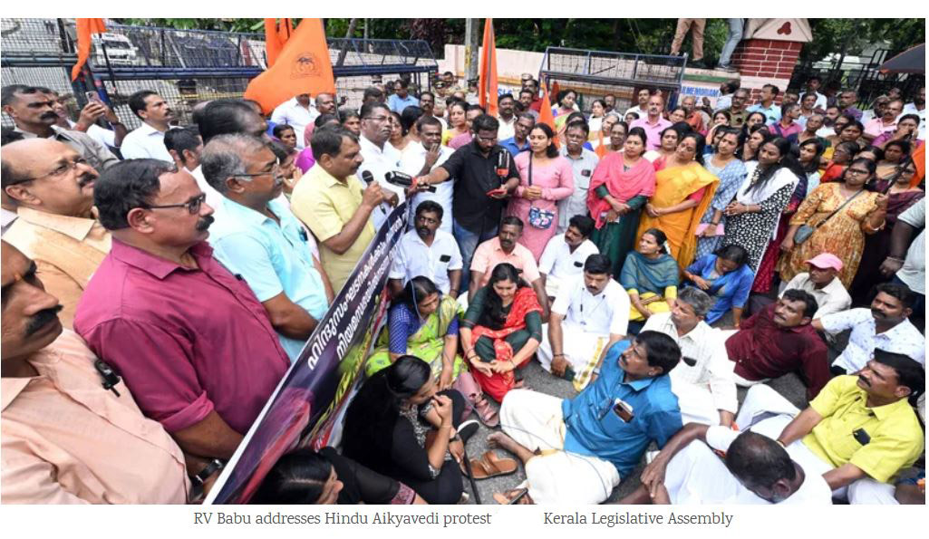 The Hindu Aikyavedi and other Hindu organisations, staged a massive protest in front of the Kerala Legislative Assembly, demanding the removal of comments made against the RSS and its leaders from the assembly records.