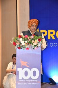 Addressing the gathering, Shri Hosabale recalled Shillong’s historical association with eminent national personalities such as Swami Vivekananda, Rabindranath Tagore and Netaji Subhas Chandra Bose, describing the occasion as significant in the centenary year of the organisation. He traced the journey of the RSS since its founding in 1925 at Nagpur by Dr. Keshav Baliram Hedgewar, noting that the organisation has grown from a single shakha in 1925 to nearly 85,000 daily shakhas across the country today.
