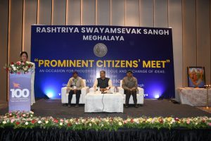 Shillong, 21 March: As part of the centenary year celebrations of the Rashtriya Swayamsevak Sangh (RSS), the organisation’s Meghalaya organised a Prominent Citizens’ Meet in Shillong to facilitate dialogue and exchange of ideas among distinguished members of society. The programme was held at Courtyard by Marriott, Shillong, where the keynote address was delivered by RSS Sarkaryavah (General Secretary) Shri Dattatreya Hosabale.