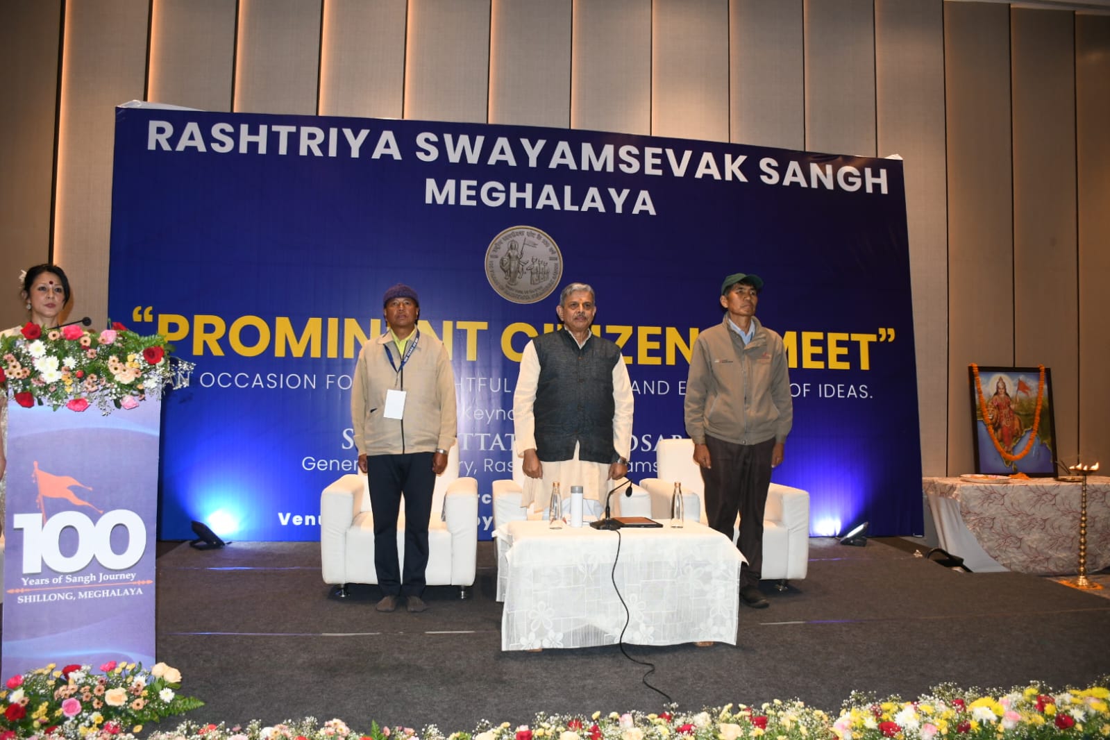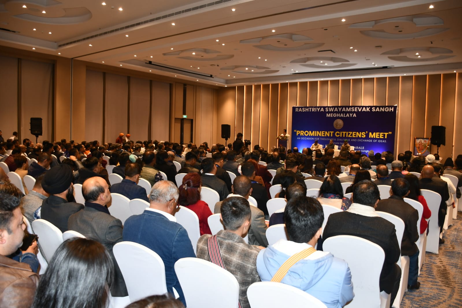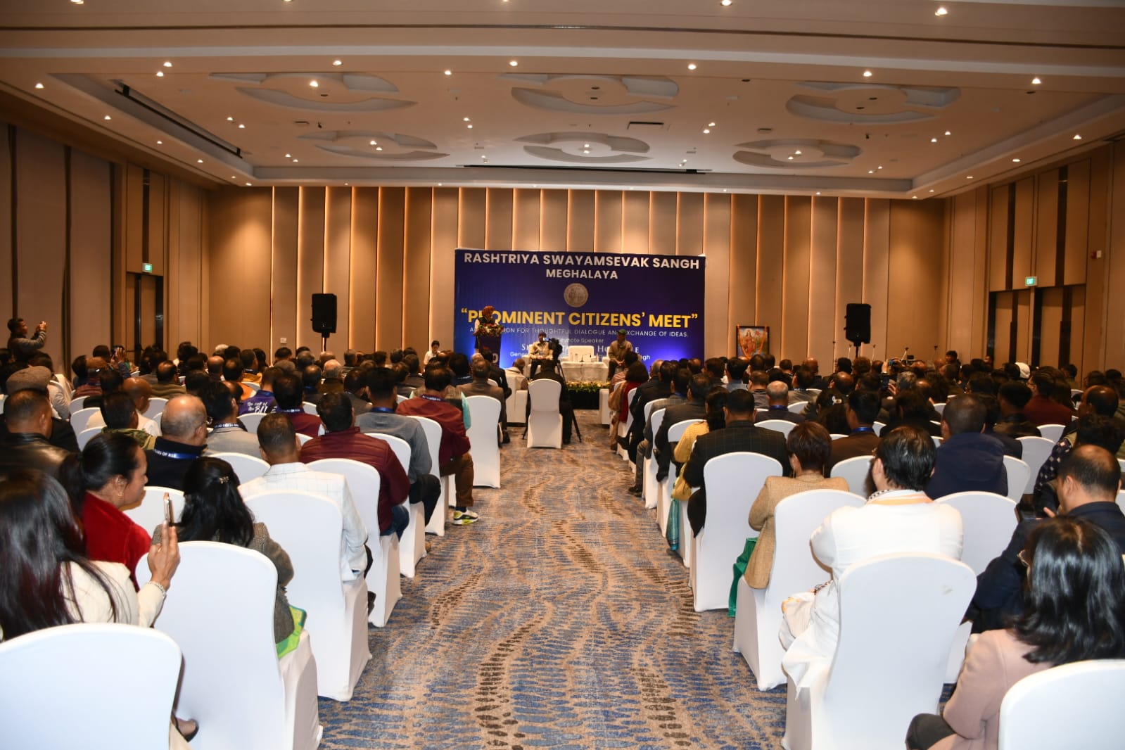 Shillong, 21 March: As part of the centenary year celebrations of the Rashtriya Swayamsevak Sangh (RSS), the organisation’s Meghalaya organised a Prominent Citizens’ Meet in Shillong to facilitate dialogue and exchange of ideas among distinguished members of society. The programme was held at Courtyard by Marriott, Shillong, where the keynote address was delivered by RSS Sarkaryavah (General Secretary) Shri Dattatreya Hosabale.